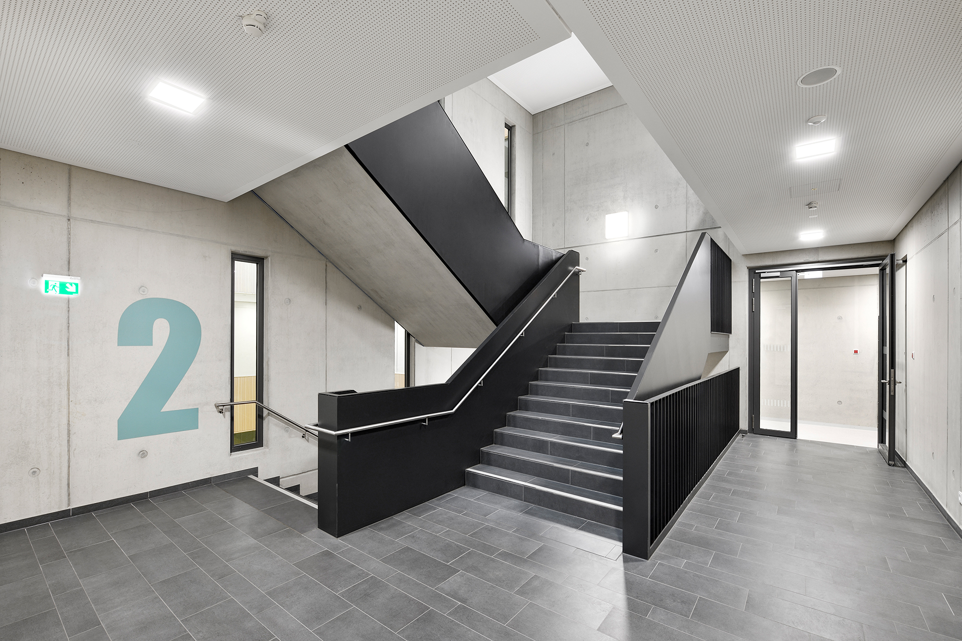Der zweite Bauabschnitt (BA 2) beinhaltet den Bau eines 5-gruppigen Hortes, Mittagsbetreuungsflächen für den Schulbereich und den Bau einer Dreifachsporthalle. Die geplante Sporthalle ist durch zwei Trennvorhänge in drei Hallen aufgeteilt. Insgesamt hat die Baumaßnahme eine Dimensionierung von etwa 46 m auf 39 m. Die lichte Höhe über den Turnhallenboden beträgt 7,50 m bis zur Achse des Untergurtknotens der Tragkonstruktion. Die weitgespannte Dachkonstruktion der Dreifachsporthalle beinhaltet einen Einfeldträger mit 31,30 m und einen Kragarm mit 7,42 m. Für den Neubau der Turnhalle war eine Baugrubensicherung notwendig. Als Bodenverbesserungsmaßnahme kamen hierbei CSV-Säulen zum Einsatz. Die Dachkonstruktion besteht aus einem Raumfachwerk mit Stahl- und Holzelementen. Alle tragenden Wände, Bodenplatten, Decken und Unterzüge wurden in Stahlbeton ausgeführt. Die Außenwände sind mit einer hinterlüfteten, teils mit Platten und teils mit Lamellen besetzten Fassade verkleidet.